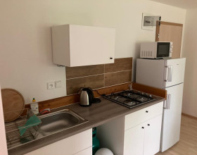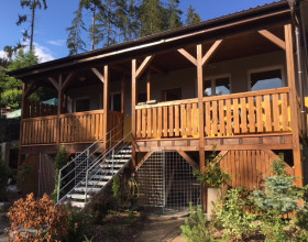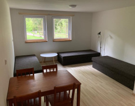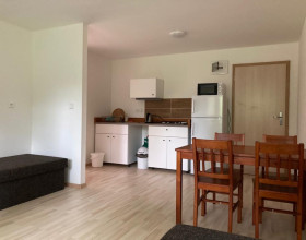Poskytujeme ubytování ve dvou nadstandardně vybavených apartmánech s vlastní terasou v novostavbě (dokončené 06/2018). Apartmány jsou naprosto shodné vybavením i velikostí (45 m2 + terasa 15 m2). Apartmán je vybaven pro ubytování až 6 osob (4+2), t.j. 4 pevná lůžka + rozkládací  sedací souprava situovánno jako byt 2+ kk. V každém apatmánu je k dispozici plně vybavená kuchyně: